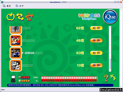 Dossiers et Tutos N64 Par Magnio - Novembre 2011 Liste des Chapitres : 1. Présentation Tout ce que touche Nintendo ne se transforme pas toujours en or, certaines inventions de la firme Nippone n'ont en effet pas rencontrées le succès escompté. Ce fut le cas notamment de l'Ique Player 64, qui nous intéresse aujourd'hui dans ce dossier. Sorti uniquement en Chine en 2001 et se présentant comme une mini-console, l'Ique se veut être une évaluation du marché de la dématérialisation de la part de Nintendo. Pas de support cartouche donc, mais un système discutable de téléchargement en ligne des jeux. L'Ique Player fera finalement un flop, ayant peu de support marketing de la part de Nintendo, étant trop cher et trop limité (Restriction de la langue, seulement 20 jeux disponibles). Néanmoins, voyons en détails les caractéristiques et le fonctionnement de la « bête ». ![]() 2. Description Avant de décrire l'objet en détails, voyons ce que contient la boite d'emballage. Outre bien évidemment la console, vous y trouverez le cordon d'alimentation, un câble USB, les manuels d'instructions et enfin la Notice de Dr Mario 64, jeu fourni d'office avec l'Ique Player. ![]() L'Ique Player se présente comme une grosse manette officielle Nintendo 64, mais à seulement 2 branches et de couleurs noir ou gris. Il embarque l'intégralité des boutons d'un pad classique, la croix directionnelle étant ramenée à gauche en dessous du joystick et le bouton L étant placé sur la tranche au dessus du bouton Z. Toujours sur le dessus de l'objet, 2 prises sont disponibles, respectivement pour l'alimentation et le raccordement USB. Le bouton Power est placé à l'avant de l'Ique Player, loin de la portée des doigts pour éviter un éventuel arrêt par inadvertance. La carte mémoire s'insère par-dessous et l'emplacement pour le Memory Pack et le Rumble Pack a quand à lui disparu. Enfin, la coque est striée devant et sur les poignées, assurant ainsi une bonne préhension en mains. ![]() Les plastiques utilisés pour les coques et les boutons sont d'excellente qualité, en particulier pour ces derniers qui sont identiques à une manette officielle classique. Le joystick quand à lui est à mi-chemin entre celui de la N64 et du Gamecube, à savoir petit, robuste et précis. Il semble par ailleurs bien plus délicat de le changer/réparer en cas de problème. Le pavé directionnel n'est pas représenté par une croix classique, puisque les diagonales sont également présentes, on peut donc la qualifier de « ronde ». L'engin n'intégrant pas de système de vibrations et n'y étant de surcroit pas compatible, il n'offre donc pas plus de sensations qu'une manette classique. Pour finir, les touches L, R et Z sont plus larges et plus longues que sur un pad classique, pour une utilisation plus confortable. 3. Utilisation Tout d'abord, afin de gérer la bibliothèque de jeux disponible sur votre Ique, sachez que vous devez impérativement télécharger et installer le logiciel Ique@Home afin de vous connecter sur le site officiel de l'Ique Player 64. L'Ique étant reconnu automatiquement et vous permettant d'accéder directement sans identifiants à votre liste de jeu, on peut donc logiquement présumer que les jeux sont débloqués directement sur l'Ique Player, ils sont donc liés au matériel et non à un compte en ligne. Conséquence directe de cela, si votre Ique tombe en panne, vous perdrez l'intégralité de vos jeux par la même occasion. Il ne fait aucun doute que ce genre d'argument n'a pas aidé au succès de l'Ique Player à sa sortie. D'autre part, il ne faudrait pas que le site officiel ferme ses portes dans un futur proche, impossible de prédire s'il serait toujours possible de gérer sa bibliothèque de jeux sans être connecté à Ique@Home Passées ces petites précisions peu réjouissantes, voyons maintenant en détails comment gérer votre fameuse bibliothèque de jeux. Bien que la langue constitue une barrière assez délicate (en Chinois NDLR), les Menus sont au final assez clairs et dépouillés, et facile d'accès aux novices grâce à de grandes icônes qui sont plutôt explicites. ![]() Le Club est une zone d'échange et de communication avec la communauté de l'Ique Player 64. On peut s'y connecter après inscription via des identifiants, un peu comme sur un forum traditionnel. La Pomme, qui représente en quelque sorte « le marché », le magasin. C'est dans ce Menu que vous pouvez consulter la liste des jeux disponibles et si le coeur vous en dit, les acheter. Les jeux apparaissent sous forme de vignettes accompagnées de quelques informations utiles (Date de sortie, Prix, nombre de Blocs nécessaires, etc. ). En bas si situe également une réglette qui vous indique l'espace disponible et restant sur votre carte mémoire, vous pouvez ainsi en 1 rapide coup d'oeil voir si vous avez la place ouo non d'installer un jeu avant de l'acheter. Les Flèches représentent le service de gestion des jeux sur votre Ique Player, c'est donc le Menu qui nous intéresse tout particulièrement. Dans celui-ci, les jeux débloqués pour votre Ique apparaissent à gauche de l'écran en colonne, reconnaissables par leur vignette. Pour chaque jeu est indiqué à droite le nombre de blocs qu'il tient sur la carte mémoire. On retrouve tout en bas la réglette qui permet de savoir quel espace mémoire est disponible sur votre carte. ![]() Ce Menu se révèle assez instinctif même dès les premières utilisations. Pour chaque jeu, on peut l'installer sur la carte mémoire via le bouton d'installation tout à droite. Si ce bouton est en Jaune, c'est que le jeu n'est pas encore installé sur votre carte. S'il est en Orange, vous l'aurez compris, c'est qu'il est bien évidemment déjà installé. De même pour la réglette, le Rouge vous indique quel espace est déjà occupé par vos jeux installés et en Jaune celui qui est encore disponible. On remarque donc qu'une carte mémoire ne fait qu
