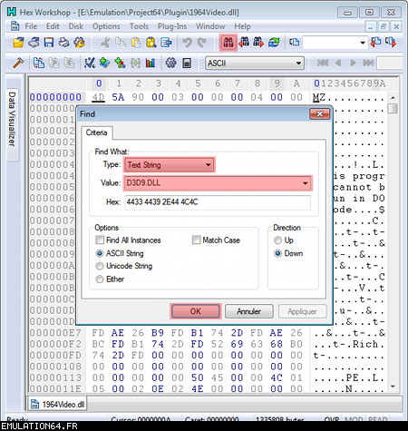 Dossiers et Tutos N64 Par BFrancois - Aout 2012 Liste des Chapitres : 1. Introduction Un Shader est un petit programme convertissant les objets 3D. Il permet ainsi d'améliorer le rendu visuel en faisant évoluer plusieurs critères tels que la lumière, le relief ou les ombres. Attention, les cartes graphiques ne supportent pas toutes les Shaders (si votre carte est récente, il ne devrait pas y avoir de problème). Si vous voulez en savoir plus sur les Shader, allez voir sur Wikipédia. A ce jour, aucun plugin vidéo N64 ne permet d'utiliser directement des shaders. Heureusement, nous allons voir qu'en utilisant une version modifiée des plugins "RiceVideo/1964Video" ,il est quand même possible de les utiliser. 2. Pré-requis Pour jouer avec des Shaders sur les émulateurs Nintendo 64, vous aurez besoin : * D'un émulateur N64 : nous utiliserons Project64. * Du Pack Mudlord's Rice Video Build 6.1.3 DX9 (modifié) + Shaders. Si vous voulez modifier vous-même un plugin, vous aurez besoin : * D'un plugin "RiceVideo/1964Video". * D'un éditeur hexadécimal : nous utiliserons Workshop Hex Editor. Si vous voulez simplement utiliser le plugin "Mudlord's Rice Video Build 6.1.3 DX9" modifié fourni dans le Pack, ne vous embêtez pas avec "Hex Workshop Hex Editor", et passez directement au Chapitre 4. Si vous préférez modifier vous-même une version plus récente du Plugin "RiceVideo/1964Video", ça se passe au Chapitre suivant. 3. Modifier le plugin Par défaut, les plugins "RiceVideo/1964Vidéo" font directement appel à DirectX 9. Nous allons donc modifier le plugin pour qu'il fasse appel au fichier d4rk.dll à la place du fichier d3d9.dll. C'est le fichier "d4rk.dll" (qui se trouve dans le pack que vous avez téléchargé) qui permet de charger des Shaders. Tout d'abord, installez Hex Workshop Hex Editor puis lancez le. Cliquez ensuite sur "File", puis "Open" et sélectionnez le plugin que vous voulez modifier (dans cet exemple, je vais modifier le plugin "1964 Video R95") : ![]() Cliquez sur l'icône "Find" (Jumelles) pour afficher la fenêtre "Recherche" : - Dans le champ "Type", sélectionnez : Text String - Dans le champ "Value", saisissez : D3D9.DLL Cliquez ensuite sur "OK" pour lancer la recherche. ![]() Si vous ne vous êtes pas trompé, l'utilitaire devrait retrouver "d3d9.dll" et se positionner directement dessus : ![]() Placez le curseur devant le premier "d" de "d3d9.dll" (zone de droite), et écrivez : d4rk ![]() La modification est terminée, allez dans "File" puis "Save" pour enregistrer le fichier. Hex Workshop Hex Editor vous proposera de garder une sauvegarde du fichier d'origine (je vous conseille de garder une sauvegarde au cas où). Maintenant que le plugin vidéo est modifié, nous allons pouvoir passer à l'étape suivante. 4. Configurer l'émulateur Le Pack Mudlord's Rice Video Build 6.1.3 DX9 (modifié) + Shaders contient : * Les fichiers RiceVideo6.1.3DX9.dll et RiceVideo6.1.0.ini : Plugin vidéo modifié et son fichier de paramètres (en bleu) * Le fichier d4rk.dll : Ficher DLL permettant de charger les shaders (en vert) * Une trentaine de Shaders classés dans les dossiers (en rouge) ![]() Tout d'abord, placez les fichiers RiceVideo6.1.3DX9.dll et RiceVideo6.1.0.ini (ou le plugin que vous avez vous-même modifié) dans le dossier "Plugin" de l'émulateur. ![]() Placez ensuite le fichier d4rk.dll à la racine de l'émulateur : ![]() Choisissez maintenant un Shader parmi les 30 proposés, et placez à la racine de l'émulateur le fichier shader.fx correspondant : ![]() Ensuite, lancez l'émulateur, et sélectionnez le plugin "RiceVideo" modifié : ![]() Si vous avez un message d'erreur indiquant que le fichier INI est absent, celui-ci sera automatiquement généré par le plugin. Pour terminer, allez dans le menu "Options" de l'émulateur, puis cliquez "Configurer le plugin vidéo" et vérifiez que "Render Engine" est bien paramétré sur DirectX. ![]() Vous pouvez maintenant lancer un Rom Nintendo 64 et observer le résultat ;) 5. Exemples de Shaders Le Pack de Shaders que nous vous proposons contient une trentaine de Shaders. Nous allons vous en présenter quelques uns afin que vous puissiez voir les différents rendus qu'il est possible d'obtenir. Voici une sélection de Shaders utilisés avec le Jeu Banjo-Kazooie : ![]() Bloom (SM3) ![]() Bloom and HDR (SM2) ![]() Blur III ![]() Cel Shading ![]() Colour Shaders\Sepia ![]() Emboss Pixelato ![]() Toon Shader (No Outlines) ![]() Toon Shader ![]() Water 6. Conclusion En théorie, il est possible d'utiliser des shaders avec tous les plugins vidéo N64 utilisant DirectX 9 à condition de les modifier comme nous l'avons vu au Chapitre 3. Cependant, seul les plugins "RiceVideo/1964Video" utilisent DirectX 9, oubliez donc les plugins vidéo JaboD3D... Vous vous posez peut être la question : Pourquoi nous avoir expliqué comment modifier un plugin alors que le Pack en contient déjà un ? En fait, il existe une multitude de plugins "RiceVideo/1964Vidéo" : ils n'affichent pas tous le même rendu graphique et certains proposent des options en plus. Vous serez ainsi obligé de jongler entre plusieurs versions en fonction des roms que vous utiliserez, notamment si vous voulez charger des packs de textures. En fouillant sur le net, vous pourrez peut être trouver d'autres Shaders, n'hésitez-pas à faire des tests (seule contrainte, le Shader devra obligatoirement s'appeler "shader.fx"). Si vous aimez bidouiller ou si vous avez quelques connaissances, vous pouvez aussi éditer les fichiers "shader.fx" avec le Bloc-note et changer certains paramètres (ou même créer votre propre Shader). Attention, certaines cartes graphiques ne supportent pas les shaders. |
