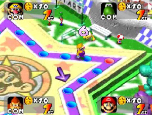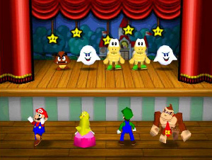 Dossiers et Tutos N64 Par BFrancois - Novembre 2024 Liste des Chapitres : 1. Introduction Mario Party est une série de jeux vidéo de type Party-Game éditée par Nintendo et développée par Hudson Soft jusqu'en 2007, puis par Nd Cube. Initiallement, Nintendo avait envisagé de créer un jeu de société avec des personnages de l'univers Mario. Cependant, le projet a évolué en un Party-Game, ce qui a donné naissance à Mario Party. ![]() Le concept de Mario Party est simple : jusqu'à quatre joueurs contrôlent des personnages de l'univers Mario et se déplacent sur un plateau de jeu virtuel en utilisant des dés pour avancer. Les joueurs participent à des mini-jeux aléatoires pour gagner des pièces, qui peuvent être utilisées pour acheter des étoiles. Le joueur avec le plus d'étoiles à la fin du jeu gagne. Entre 1998 à 2001, 3 jeux Mario Party ont été commercialisés sur Nintendo 64 : Mario Party Mario Party 2 Mario Party 3 Chacun de ces jeux possède un mode multijoueurs jouable jusqu'à 4 joueurs. 2. Mario Party Mario Party est un jeu vidéo de type Party-Game développé par Hudson Soft et édité par Nintendo. Il a été commercialisé sur Nintendo 64 en 1998. Mario Party sur Nintendo 64 a été le tout premier jeu de la série. ![]() ![]() 6 personnages sont jouables : Mario, Luigi, Peach, Yoshi, Donkey Kong et Wario. L'histoire est construite autour d'une querelle amicale dans laquelle Mario et ses amis se disputent le titre de Superstar. Le jeu possède 8 plateaux (dont 2 sont à débloquer) et une cinquantaine de mini-jeux. A découvrir : Fiche : Mario Party Manuel : Mario Party Quiz : Mario Party 3. Mario Party 2 Mario Party 2 est un jeu vidéo de type Party-Game développé par Hudson Soft et édité par Nintendo. Il a été commercialisé sur Nintendo 64 en 1999. C'est la suite de Mario Party sorti en 1998 sur Nintendo 64. ![]() ![]() Tout comme dans le premier opus, 6 personnages sont jouables : Mario, Luigi, Peach, Yoshi, Donkey Kong et Wario. Mario et ses amis s'affrontent pour savoir qui aura la chance de pouvoir donner un nom à un parc à thème. Le jeu possède 7 plateaux (dont un est à débloquer) et 64 mini-jeux. A découvrir : Fiche : Mario Party 2 Manuel : Mario Party 2 Quiz : Mario Party 2 4. Mario Party 3 Mario Party 3 est un jeu vidéo de type Party-Game développé par Hudson Soft et édité par Nintendo. Il a été commercialisé sur Nintendo 64 en 2001. C'est le troisième et dernier opus à avoir été développé sur Nintendo 64. ![]() ![]() 8 personnages sont jouables : Mario, Luigi, Peach, Yoshi, Donkey Kong, Wario ainsi que les deux nouveaux personnages Daisy et Waluigi. Les protagonistes s'affrontent pour obtenir le titre de Superstar qui permettra à l'heureux vainqueur de pouvoir tenir l'Etoile Millénaire. Le jeu possède 6 plateaux (dont un est à débloquer) et 71 mini-jeux. A découvrir : Fiche : Mario Party 3 Manuel : Mario Party 3 |
