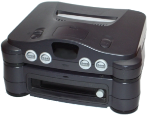 Le 64DD est un lecteur de disque magnétique qui vient se placer sous la console et qui permet d'augmenter la capacité de stockage d'un jeu.