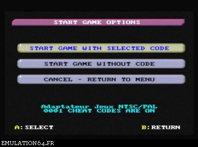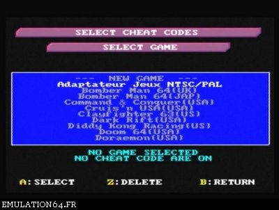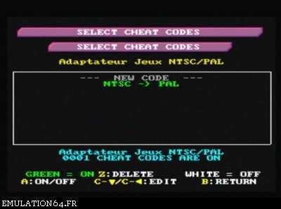 Dossiers et Tutos N64 Par Magnio - Avril 2010 Liste des Chapitres : 1. Introduction La Nintendo 64 accueille une magnifique ludothèque, variée, et faisant le bonheur de nombreux joueurs à travers le monde. Or, si une grande majorité de ses jeux ont été édité en Europe et plus particulièrement pour nous en France, ce ne fut malheureusement pas le cas pour tous, et certains titres excellents ne sont sortis que dans leur continent d'origine. Mais alors, comment jouer ou découvrir ces perles si l'on ne possède pas la console qui va respectivement avec les jeux US et Japonais ? Rassurez-vous, pour cela, il existe des adaptateurs spéciaux capables de faire tourner des jeux NTSC sur une console PAL. Parmi eux, le N64 Passport Plus III, dont je vais vous parler plus en détails dans ce dossier. 2. Présentation Fabriqué par EMS, le N64 Passport Plus III se présente de la manière suivante. Possédant une coque rigide noire et une forme de base identique aux jeux afin de parfaitement s'emboiter dans la console, la ressemblance avec les cartouches traditionnelles s'arrête pourtant là. Le Passport Plus est plus grand, comprenez par là « plus haut », et il est équipé de 2 connecteurs de circuits imprimés, l'un sur le dessus de l'adaptateur, l'autre dans le dos de celui-ci. L'arrière de la coque de l'appareil possède également une autre particularité, celle de pouvoir accueillir la forme d'un jeu qui viendrait s'emboiter à cet emplacement. Il ne possède aucun interrupteur, il fonctionne directement dès la mise sous tension de la Nintendo 64. Le N64 Passport Plus III est un appareil très utile car il est doté de 2 fonctions en un seul boitier : Adaptateur PAL/NTSC et Action Replay. Dans les 2 cas cependant, il nécessite une condition très importante pour pouvoir se lancer au démarrage de la console. En effet, celui-ci doit être accompagné d'un jeu « Boot », qui va lui permettre de démarrer normalement, jeu qui devra être inséré à l'arrière de l'adaptateur. Tous les jeux PAL peuvent être utilisés à cet effet, mais il est recommandé d'utiliser les jeux les plus populaires tels que 1080° ou Super Mario 64. Le connecteur du haut sert quand à lui à brancher le jeu que l'on souhaite adapter ou auquel on va officiellement tricher. 3. Utilisation Dans cette partie, je vais vous détailler comment paramétrer le N64 Passport Plus III pour pouvoir adapter tous les jeux NTSC sur votre console PAL, mais la manipulation pour entrer un nouveau Cheat Code est exactement la même. Au démarrage de la console, passé le logo du constructeur, le Menu principal s'affichera. Vous pourrez à votre guise, de bas en haut, gérer les sauvegardes de vos cartes mémoire, sélectionner/Entrer un nouveau Cheat Code et enfin lancer le jeu concerné. La partie qui nous intéresse est « Select Cheat Codes », à l'intérieur de celle-ci, vous y trouverez une liste prédéfinie d'une cinquantaine de jeux pour lesquels le Passport Plus possèdent déjà des codes pré-enregistrés. En haut de la liste se trouve l'option « NEW GAME » permettant d'ajouter un nouveau jeu à la base de donnée. Pour cet exemple, j'ai choisi de l'appeler « Adaptateur Jeux NTSC/PAL ». Maintenant qu'il est créé, il va falloir ajouter un code à l'intérieur de celui-ci. Sélectionner-le afin d'entrer dans le sous-menu d'édition des Cheat Codes. L'option « NEW CODE » permet comme vous vous en doutez d'ajouter un code à la liste. Toujours dans cet exemple, j'ai choisi de l'appeler « NTSC -> PAL ». Je profite de cette image pour vous indiquer qu'un Cheat Code activé apparaitra en vert tandis que les inactifs sont en blanc. Il faut désormais éditer ce Cheat afin de le rendre opérationnel. Pour cela, une simple pression sur C-Bas ou C-Gauche fera apparaitre le menu d'édition du code. Le code d'activation des jeux NTSC sur console PAL est : E93DFF04 00000000. Sortez avec B et sauvegardez. Voilà, c'est terminé. Retournez désormais sur le Menu principal et sélectionner « START GAME », assurez-vous tout de même que le code est bien activé. Il est facile de le vérifier sans retourner voir la couleur de celui-ci, car cela est indiqué en bas de l'écran : « 0001 CHEAT CODES ARE ON ». Il ne vous reste plus qu'à sélectionner l'option « START GAME WITH SELECTED CODE » pour lancer votre jeu. Il est possible d'ajouter, d'éditer ou d'effacer des jeux/codes de la liste, mais je vous laisse le découvrir par vous-même, le Passport Plus est très simple d'utilisation et toutes les étapes sont clairement expliquées à l'écran. 4. Verdict Possédant l'avantage de pouvoir être utiliser également comme Action Replay, Le Passport Plus III est incontestablement le meilleur adaptateur pour Nintendo 64. Il est capable d'adapter absolument tous les jeux NTSC sur votre console PAL, même les jeux protégés comme Sin&Punishment. Si vous ne devez en avoir qu'un, c'est bien cet accessoire là. Site officiel EMS : http://www.hkems.com/product/n64/n64-passport.htm Note de l'accessoire : ![]() ![]() ![]() ![]() ![]() Notices Manuel : EMS - N64 Passport Plus III (Anglais) Manuel : EMS - N64 Passport Plus III (Traduction) (Francais) |