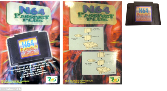 Le "N64 Passport Plus" est un accessoire non officiel pour console Nintendo 64 qui a 2 fonctions : Adaptateur PAL/NTSC et Action Replay.