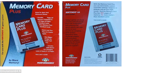 Table des Matières : Introduction Changing Units Troubleshooting Maintenance Important Notes (Manuel en Anglais - 3 pages) Qu'est ce que le Interact - Memory Card Plus ? Le "Memory Card Plus" est un accessoire non officiel qui va vous permettre de sauvegarder votre partie en cours (Capacité : 4 x 123 pages soit 492 pages). Il se branche sous votre manette Nintendo 64. Aperçu du Interact - Memory Card Plus : |