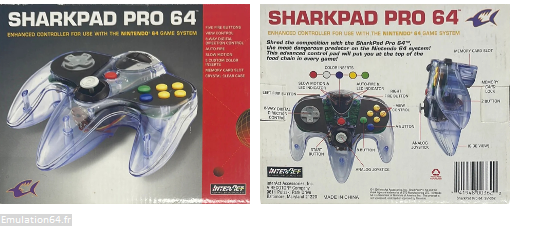 Le "SharkPad Pro 64" est une manette filaire non officielle pour console Nintendo 64 avec des fonctionnalités spéciales (Ralenti et Tir automatique).
