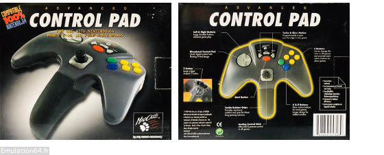 Table des Matières : Features Setting the Turbo Function Turbo Programming Example Resetting your Advanced Controller Troubleshooting Caution Warranty (Manuel en Anglais - 2 pages) Qu'est ce que le Madcatz - Advanced Control Pad ? Le "Advanced Control Pad" est une manette filaire non officielle pour console Nintendo 64 avec des fonctionnalités spéciales (Ralenti et Tir automatique). Aperçu du Madcatz - Advanced Control Pad : |