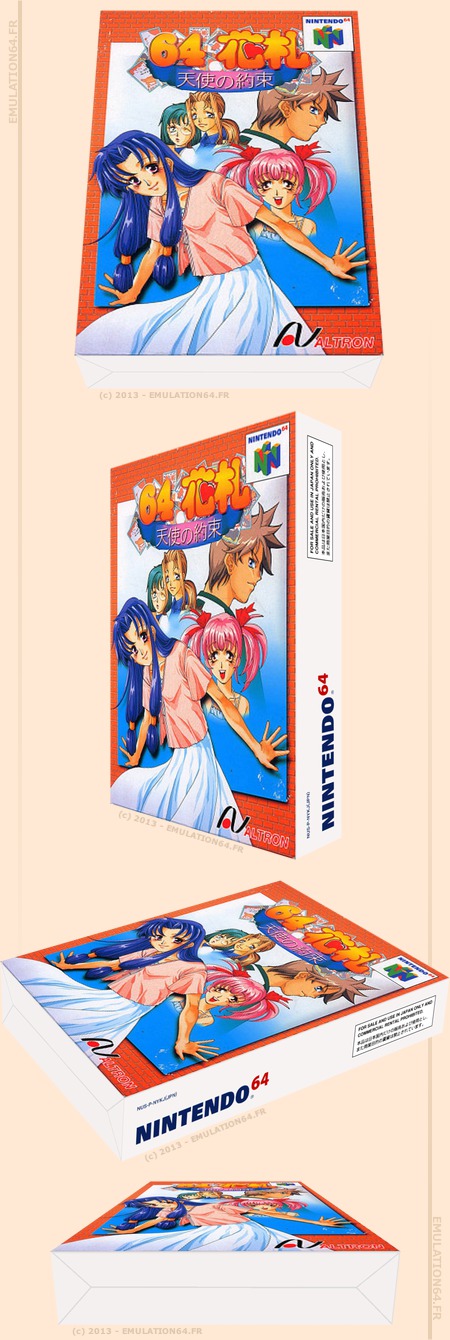 64 Hanafuda - Tenshi no Yakusoku : Informations : Plate-forme : Nintendo 64 (N64) Etat du jeu : Exclusivement import Date de sortie française : n/c 5 novembre 1999 (Japon) Genre : Jeu de société, Réflexion Jouable uniquement en solo Développeur : Altron Editeur : Altron |