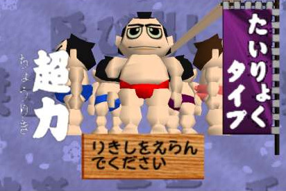 Le jeu propose une sélection de 14 personnages jouables, chacun avec ses propres caractéristiques, mouvements et styles de combat. Les personnages comprennent des lutteurs professionnels de sumo célèbres ainsi que des personnages fictifs.