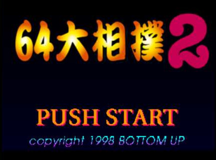 64 Oozumou 2 : Informations : Plate-forme : Nintendo 64 (N64) Etat du jeu : Exclusivement import Date de sortie française : n/c 19 mars 1999 (Japon) Genre : Sport Thème : Arts martiaux/Sumo Multijoueur : 1 à 4 Développeur : Bottom Up Editeur : Bottom Up |