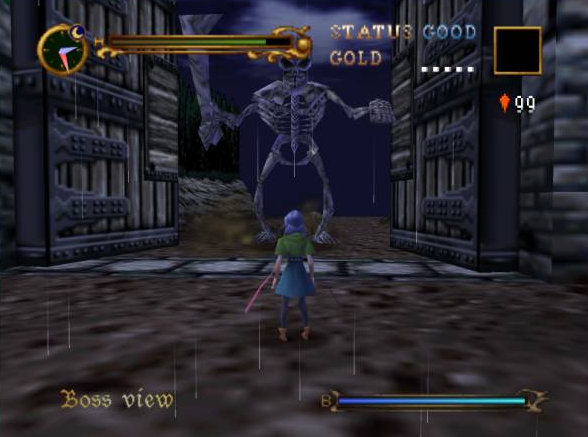Présentation Akumajou Dracula Mokushiroku - Real Action Adventure est un jeu d'action-aventure développé et publié par Konami pour la Nintendo 64 en 1999. Le jeu est basé sur la franchise Castlevania, également connue sous le nom de Akumajou Dracula au Japon. L'histoire du jeu suit les aventures de deux chasseurs de vampires, Reinhardt Schneider et Carrie Fernandez, qui sont envoyés pour enquêter sur le château de Dracula en Europe de l'Est. Le joueur peut choisir de jouer en tant que Reinhardt ou Carrie au début du jeu, chacun ayant ses propres compétences et mouvements uniques. Reinhardt est équipé d'une épée et d'un bouclier et est un combattant de mêlée puissant, capable de bloquer les attaques ennemies avec son bouclier. Carrie, quant à elle, utilise des sorts de magie et est plus agile que Reinhardt, capable de sauter plus haut et de se déplacer plus rapidement. Le gameplay est similaire à celui des précédents jeux Castlevania, avec des éléments de plateforme et de combat contre des boss. Cependant, le jeu présente également des éléments de jeu de rôle, tels que la possibilité de ramasser des objets pour améliorer les capacités de son personnage. Ces objets comprennent des potions de santé pour restaurer la santé du personnage, des cristaux de magie pour recharger la barre de magie de Carrie, des clés pour débloquer les portes verrouillées et des objets cachés qui peuvent améliorer les capacités de combat du personnage. Le jeu se déroule dans plusieurs zones différentes du château de Dracula, chacune ayant son propre thème et ses propres ennemis. Certaines zones sont des couloirs étroits, tandis que d'autres sont des chambres spacieuses remplies de pièges et d'ennemis. Les ennemis varient en taille et en puissance, allant des squelettes aux chauves-souris géantes et aux boss plus puissants comme un dragon de glace et un golem de pierre. Les textures sont de qualité et les animations des personnages et des ennemis sont fluides et réalistes. La caméra suit le personnage principal à la troisième personne, offrant une vue d'ensemble des environnements et des ennemis. La version japonaise de Castlevania 64, appelée "Akumajou Dracula Mokushiroku", a été retardée de plusieurs mois après la sortie de la version américaine. Cela a été fait pour permettre aux développeurs de corriger des bugs et d'améliorer certains aspects du jeu avant sa sortie au Japon. Castlevania 64 a inspiré une suite directe, intitulée Castlevania - Legacy of Darkness. Cette suite était censée être une extension de Castlevania 64, mais elle comprenait également des niveaux et des personnages supplémentaires qui n'étaient pas présents dans le jeu d'origine. ![]()