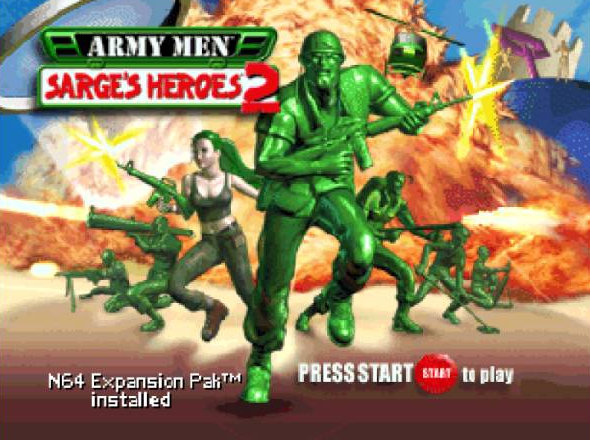 Army Men - Sarge's Heroes 2 est un jeu d'action personne développé et édité par The 3DO Company sur Nintendo 64 en 2000. Le jeu est la suite du premier opus Army Men: Sarge's Heroes et fait partie de la série de jeux Army Men qui met en scène des jouets militaires miniatures dans des batailles à grande échelle.
