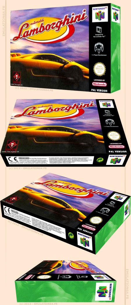 Automobili Lamborghini : Informations : Plate-forme : Nintendo 64 (N64) Etat du jeu : Disponible Date de sortie française : 1997 1997 (USA) - 1997 (Japon) Genre : Course Thème : Automobile Multijoueur : 1 à 4 Développeur : Titus Editeur : Titus Jeu également connu sous le Nom : Super Speed Race 64 |