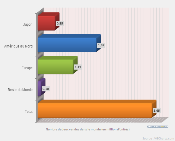 Nombre de Jeux vendus dans le monde (en million d'unités) :