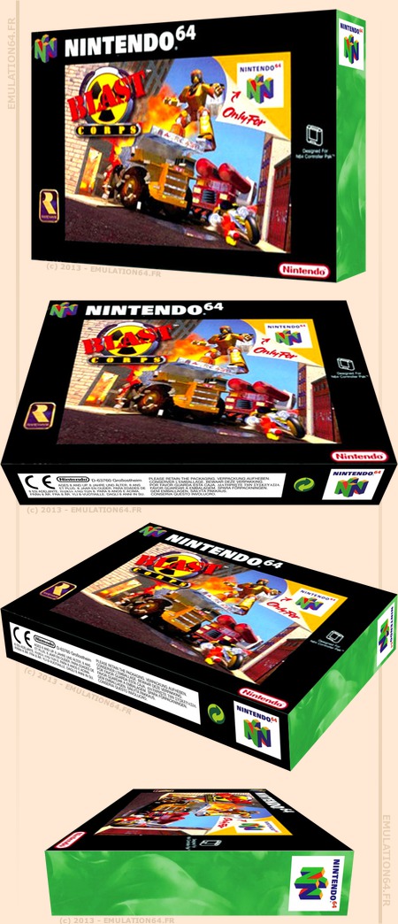 Blast Corps : Informations : Plate-forme : Nintendo 64 (N64) Etat du jeu : Disponible Date de sortie française : 1er septembre 1997 28 février 1997 (USA) - 21 mars 1997 (Japon) Genre : Action Jouable uniquement en solo Développeur : Rare Editeur : Nintendo Jeu également connu sous le Nom : Blast Dozer |