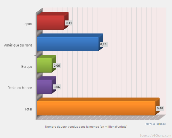 Nombre de Jeux Vendus Nombre de Jeux vendus dans le monde (en million d'unités) : ![]() Voir le Dossier : Les Jeux Nintendo 64 les plus vendus. |