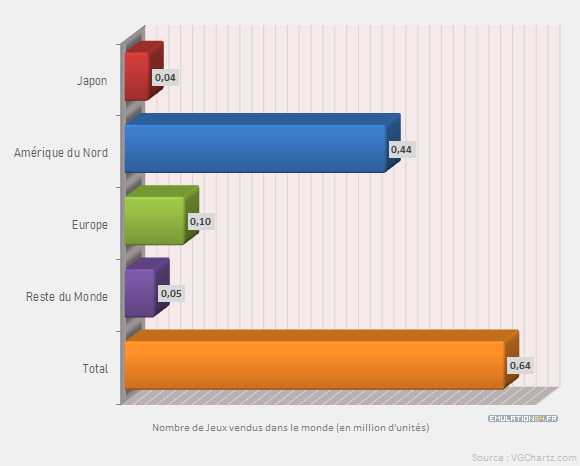 Nombre de Jeux Vendus Nombre de Jeux vendus dans le monde (en million d'unités) : ![]() Voir le Dossier : Les Jeux Nintendo 64 les plus vendus. |