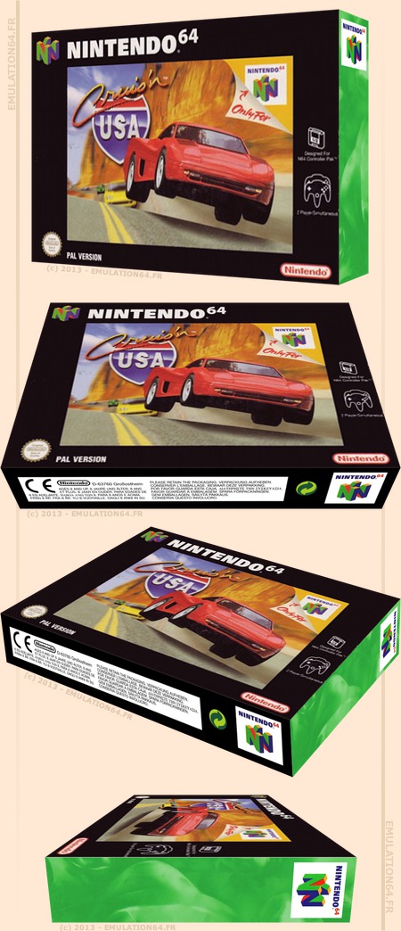 Cruis'n USA : Informations : Plate-forme : Nintendo 64 (N64) Etat du jeu : Disponible Date de sortie française : 1998 1996 (USA) Genre : Course Thème : Automobile Multijoueur : 1 à 2 Développeur : Midway Games Editeur : Nintendo |