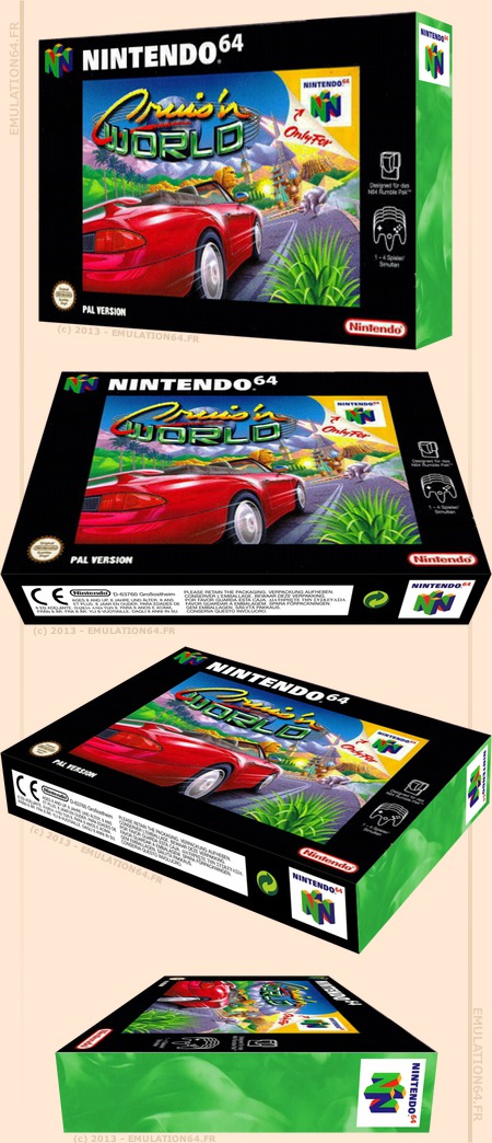 Cruis'n World : Informations : Plate-forme : Nintendo 64 (N64) Etat du jeu : Disponible Date de sortie française : n/c Juin 1997 (USA) Genre : Course Thème : Automobile Multijoueur : 1 à 4 Développeur : Euroc |