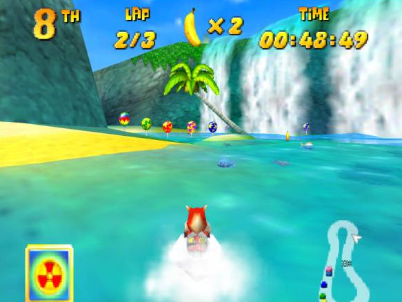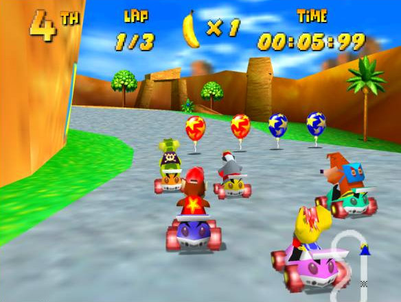 Présentation Diddy Kong Racing est un jeu de course développé par Rare et sorti en 1997 sur Nintendo 64. Le jeu comporte trois modes principaux : le mode aventure, le mode course libre et le mode bataille. Dans le mode aventure, le joueur doit collecter des pièces, des clés et des amulettes en traversant huit mondes différents. Chaque monde se compose de quatre courses différentes, ainsi que d'un défi de boss. Le joueur doit vaincre chaque boss pour obtenir une amulette et débloquer le monde suivant. Le mode course libre permet au joueur de choisir n'importe quel personnage et de courir sur n'importe quelle piste qu'il a déverrouillée dans le mode aventure. Les joueurs peuvent également personnaliser la difficulté des courses en choisissant de jouer en mode facile, moyen ou difficile. Le mode bataille est un mode multijoueur dans lequel les joueurs s'affrontent dans des arènes en essayant de s'attaquer mutuellement à l'aide de projectiles. Les joueurs peuvent choisir parmi plusieurs types d'arènes différentes, chacune ayant ses propres caractéristiques et pièges. Les joueurs peuvent choisir leur propre chemin à travers les pistes, en passant par des portes ou raccourcis qui leur donnent un avantage tactique. Les joueurs peuvent également collecter des power-ups pour améliorer leur vitesse ou leur attaque, ou pour ralentir leurs adversaires. L'un des personnages jouables, Conker, a ensuite eu droit à son propre jeu, Conker's Bad Fur Day, qui était beaucoup plus mature et violent que Diddy Kong Racing. ![]()