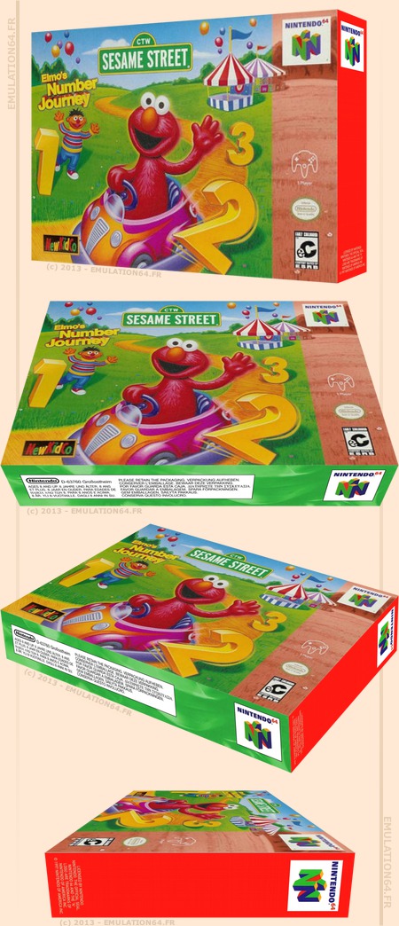 Elmo's Number Journey : Informations : Plate-forme : Nintendo 64 (N64) Etat du jeu : Exclusivement Import Date de sortie française : n/c 27 novembre 1999 (États-Unis) Genre : Ludo-éducatif Jouable uniquement en solo Développeur : NewKidCo Editeur : Realtime Associates |