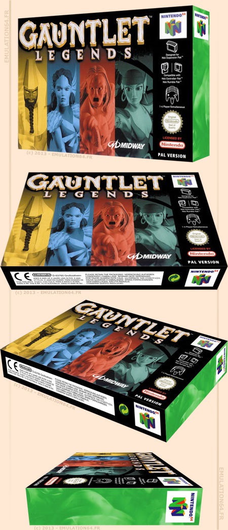 Gauntlet Legends : Informations : Plate-forme : Nintendo 64 (N64) Etat du jeu : Disponible Date de sortie française : n/c 31 août 1999 (USA) Genre : Action-Aventure Thème : Heroïc-fantasy Multijoueur : 1 à 4 Développeur : Atari Corporation Editeur : Midway Games |
