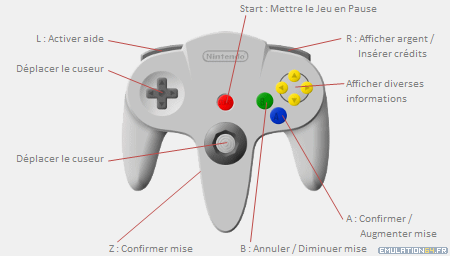 Si vous souhaitez obtenir plus d'informations sur les commandes de Golden Nugget 64, vous pouvez consulter le Manuel du Jeu.