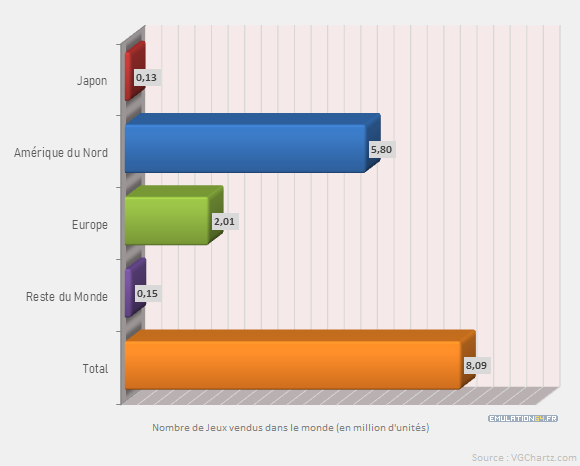 Nombre de Jeux vendus dans le monde (en million d'unités) :