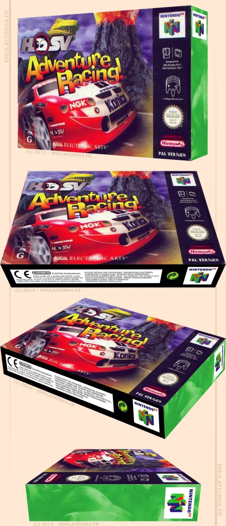 HSV Adventure Racing : Informations : Plate-forme : Nintendo 64 (N64) Etat du jeu : Disponible Date de sortie française : 1999 1999 (USA) - 1999 (Japon) Genre : Course Thème : Automobile Multijoueur : 1 à 4 Développeur : Paradigm Entertainment Inc. Editeur : Electronic Arts Distributeur : Electronic Arts |