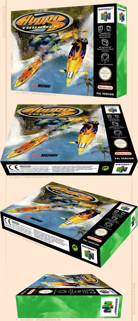 Hydro Thunder : Informations : Plate-forme : Nintendo 64 (N64) Etat du jeu : Disponible Date de sortie française : Mai 2000 28 février 2000 (USA) Genre : Course/Action Thème : Nautique-Naval Multijoueur : 1 à 4 Développeur : Eurocom Editeur : Midway Games |