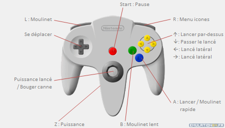 Comment Jouer ![]() Si vous souhaitez obtenir plus d'informations sur les commandes de In-Fisherman Bass Hunter 64, vous pouvez consulter le Manuel du Jeu.