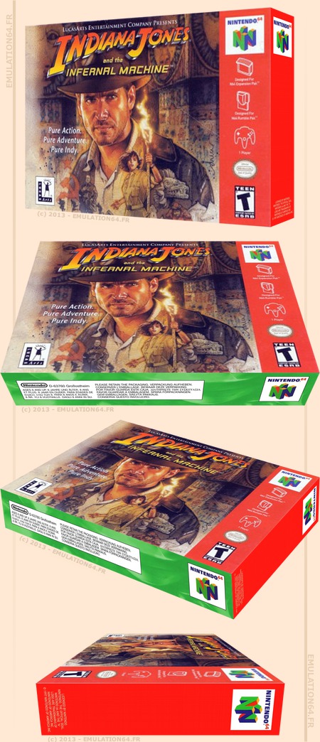 Indiana Jones and the Infernal Machine : Informations : Plate-forme : Nintendo 64 (N64) Etat du jeu : Disponible Date de sortie française : 2eme trimestre 2001 15 décembre 2000 (USA) Genre : Action-Aventure/Plates-formes Jouable uniquement en solo Développeur : LucasArts Entertainment Editeur : LucasArts Entertainment |