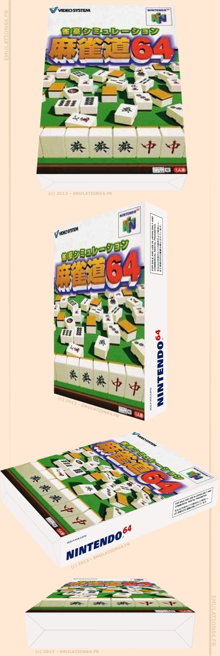 Jangou Simulation Mahjong Do 64 : Informations : Plate-forme : Nintendo 64 (N64) Etat du jeu : Exclusivement import Date de sortie française : n/c 25 juillet 1997 (Japon) Genre : Jeu de Mah-jong Jouable uniquement en solo Développeur : Video System Editeur : Video System |