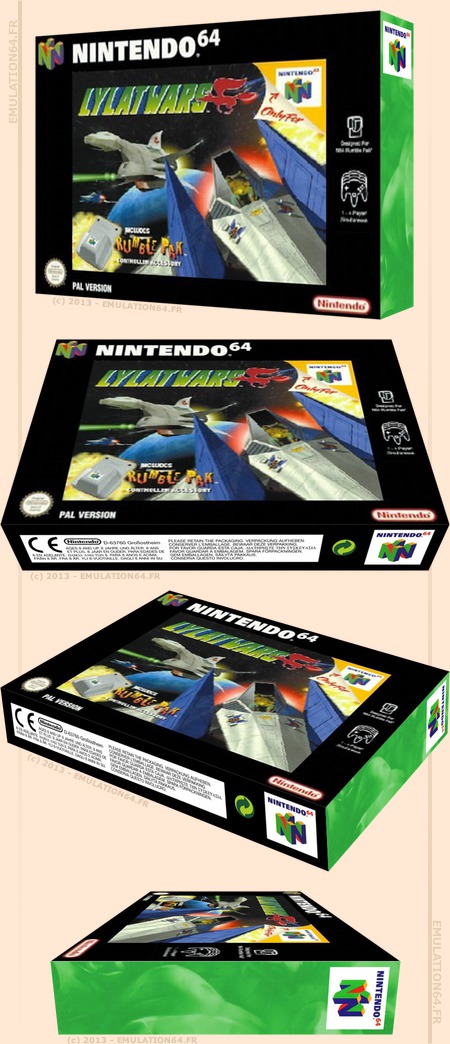 Lylat Wars : Informations : Plate-forme : Nintendo 64 (N64) Etat du jeu : Disponible Date de sortie française : 1997 1997 (USA) - 1997 (Japon) Genre : Shoot them up Thème : Futuriste/Combat spatial Multijoueur : 1 à 4 Développeur : Nintendo Editeur : Nintendo Distributeur : Nintendo Jeu également connu sous le Nom : Star Fox 64 |