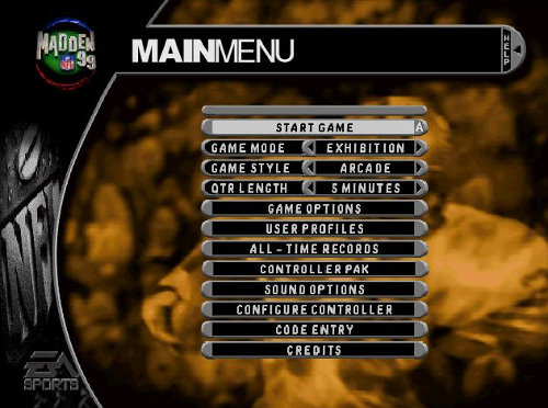 Madden NFL 99 : Informations : Plate-forme : Nintendo 64 (N64) Etat du jeu : Disponible Date de sortie française : 1998 1998 (USA) Genre : Sport Thème : Football américain Multijoueur : 1 à 4 Développeur : Tiburon Editeur : Electronic Arts |