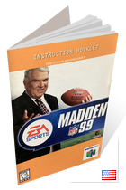 Madden NFL 99 : Informations : Plate-forme : Nintendo 64 (N64) Etat du jeu : Disponible Date de sortie française : 1998 1998 (USA) Genre : Sport Thème : Football américain Multijoueur : 1 à 4 Développeur : Tiburon Editeur : Electronic Arts |