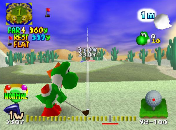 Mario Golf est un jeu de golf développé par Camelot et édité par Nintendo pour la console Nintendo 64 en 1999. Le jeu propose une expérience de golf amusante et accessible, avec des personnages emblématiques de l'univers de Mario en tant que golfeurs jouables.