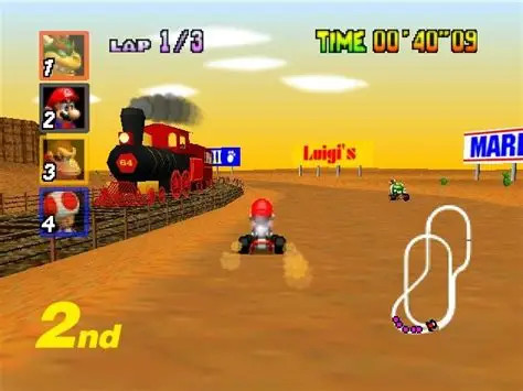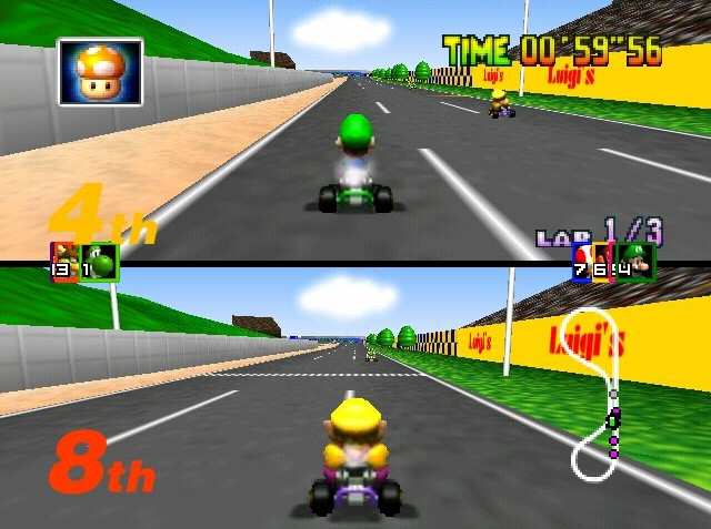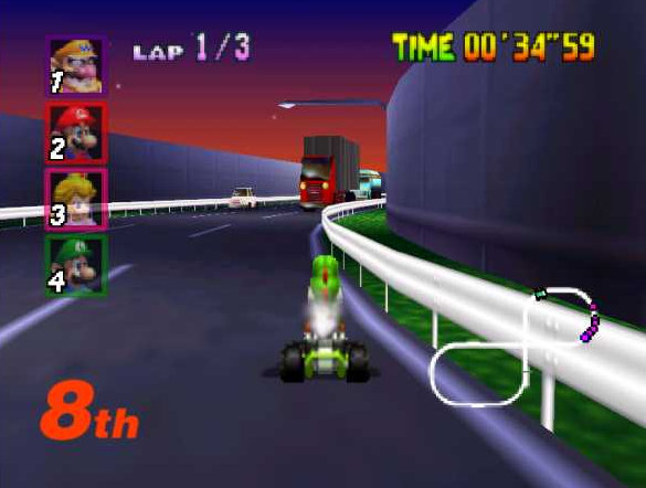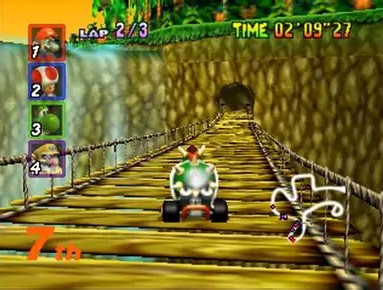 Mario Kart 64 : Informations : Plate-forme : Nintendo 64 (N64) Etat du jeu : Disponible Date de sortie française : 24 juin 1997 10 février 1997 (USA) - 14 décembre 1996 (Japon) Genre : Course/Action Thème : Automobile/Karting Multijoueur : 1 à 4 Développeur : Nintendo Editeur : Nintendo |