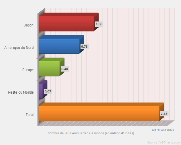 Nombre de Jeux Vendus Nombre de Jeux vendus dans le monde (en million d'unités) : ![]() Voir le Dossier : Les Jeux Nintendo 64 les plus vendus. |