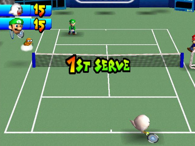 Le personnage Waluigi a été créé spécifiquement pour Mario Tennis 64 et n'apparaît dans aucun autre jeu avant celui-ci. Il a été ajouté au jeu en tant que partenaire de Wario, le rival de Mario.