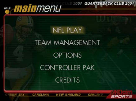 NFL Quarterback Club 2001 : Informations : Plate-forme : Nintendo 64 (N64) Etat du jeu : Exclusivement import Date de sortie française : n/c 23 août 2000 (USA) Genre : Sport Thème : Football américain Multijoueur : 1 à 4 Développeur : High Voltage Software Editeur : Acclaim Entertainment |