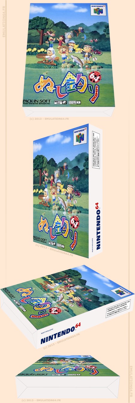 Nushi Tsuri 64 : Informations : Plate-forme : Nintendo 64 (N64) Etat du jeu : Exclusivement import Date de sortie française : n/c 27 novembre 1998 (Japon) Genre : Peche Jouable uniquement en solo Développeur : Pack-In Video Editeur : Pack-In Video |