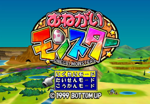 Onegai Monsters : Informations : Plate-forme : Nintendo 64 (N64) Etat du jeu : Exclusivement import Date de sortie française : n/c 9 avril 1999 (Japon) Genre : Jeu de rôles Jouable uniquement en solo Développeur : Bottom Up Editeur : Bottom Up |