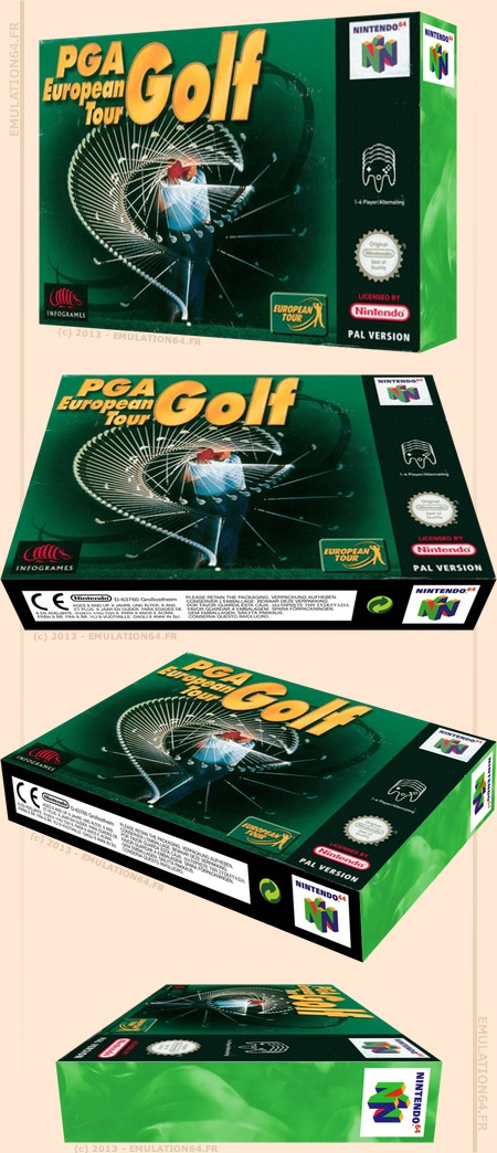 PGA European Tour : Informations : Plate-forme : Nintendo 64 (N64) Etat du jeu : Disponible Date de sortie française : 2000 7 juin 2000 (USA) Genre : Sport Thème : Golf Multijoueur : 1 à 4 Développeur : Atari (Infogrames) Editeur : Atari (Infogrames) |