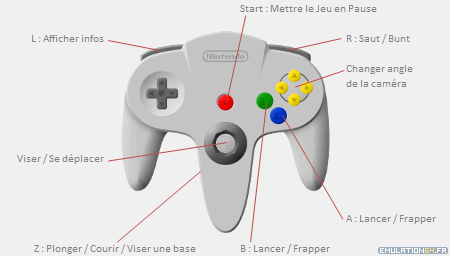 Si vous souhaitez obtenir plus d'informations sur les commandes de Power League Baseball 64, vous pouvez consulter le Manuel du Jeu.