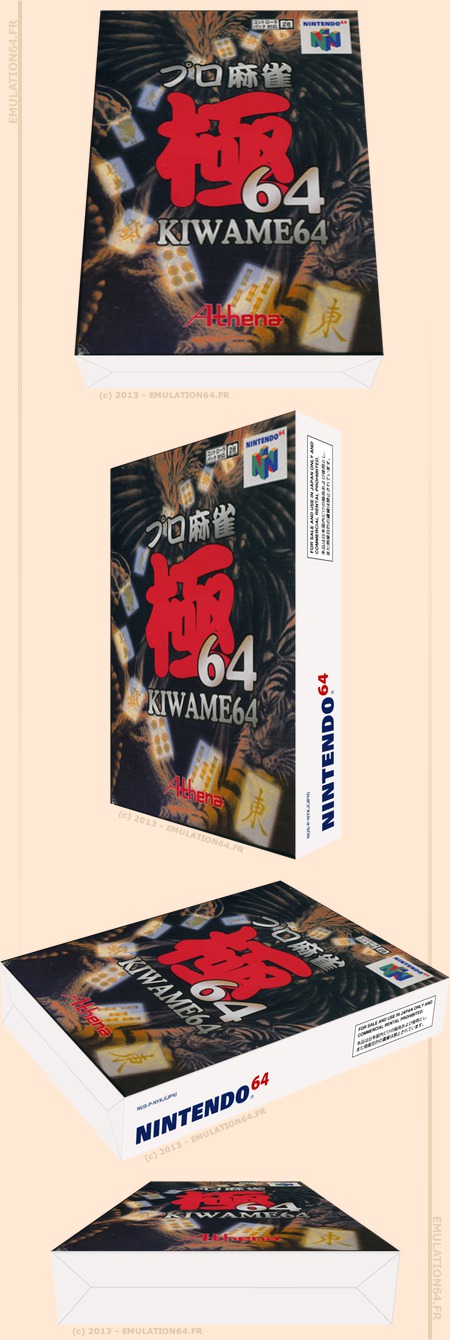 Pro Mahjong Kiwame 64 : Informations : Plate-forme : Nintendo 64 (N64) Etat du jeu : Exclusivement import Date de sortie française : n/c 21 novembre 1997 (Japon) Genre : Jeu de société, hasard Thème : Mahjong Multijoueur : 1 à 4 Développeur : Athena Editeur : Athena |