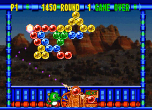| ‹ Puzzle Bobble 64 › パズルボブル64 Présentation | Images | Vidéos | Boîtes | Notices | Comment Jouer | Astuces | Tests | Ventes | Quiz | Contenu Divers |