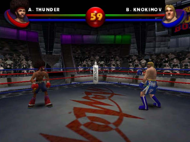 Présentation Ready 2 Rumble Boxing - Round 2 est un jeu vidéo de boxe sorti sur la console Nintendo 64 en 2000. Le titre a été développé par Midway Games. Dès le lancement du jeu, les joueurs sont immédiatement immergés dans l'univers coloré et excentrique de Ready 2 Rumble Boxing - Round 2. Les graphismes sont bien réalisés pour l'époque, avec des personnages aux designs originaux et des environnements variés. Chaque boxeur a sa propre apparence distincte et des mouvements de combat spécifiques, ce qui ajoute de la diversité et de la personnalité au gameplay. Le jeu propose un large éventail de modes de jeu. Le mode Carrière est le mode principal, où les joueurs créent leur propre boxeur et le font monter en grade en remportant des combats. Ils peuvent personnaliser leur boxeur en choisissant son apparence physique, ses vêtements et ses attributs de combat,. En plus du mode Carrière, Ready 2 Rumble Boxing - Round 2 propose des modes de jeu supplémentaires tels que le mode Exhibition, où les joueurs peuvent choisir parmi une variété de boxeurs préexistants et s'affronter dans des matchs rapides. Il y a aussi le mode Tournoi, où les joueurs peuvent participer à des compétitions de boxe à plusieurs niveaux et tenter de devenir le champion ultime. Les commandes sont simples à prendre en main. Les combats sont rapides et intenses, avec des mouvements fluides et réactifs. Chaque boxeur a sa propre combinaison de mouvements spéciaux dévastateurs. Ready 2 Rumble Boxing - Round 2 propose également une bande-son entraînante qui accompagne les combats. Des voix décalées et des commentaires colorés ajoutent à l'atmosphère amusante et légère du jeu. Les voix des personnages étaient exagérées et souvent drôles. Chaque boxeur avait des répliques spécifiques et des commentaires pendant les combats, ce qui ajoutait à l'ambiance divertissante du jeu. ![]()