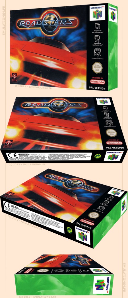 Roadsters Trophy : Informations : Plate-forme : Nintendo 64 (N64) Etat du jeu : Disponible Date de sortie française : 1999 1999 (USA) Genre : Course Thème : Automobile Multijoueur : 1 à 4 Développeur : Titus Editeur : Titus |