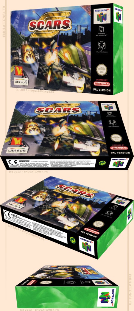 S.C.A.R.S. : Informations : Plate-forme : Nintendo 64 (N64) Etat du jeu : Disponible Date de sortie française : 1998 1998 (USA) Genre : Course/Action Thème : Futuriste Multijoueur : 1 à 4 Développeur : Vivid Image Editeur : Ubisoft |