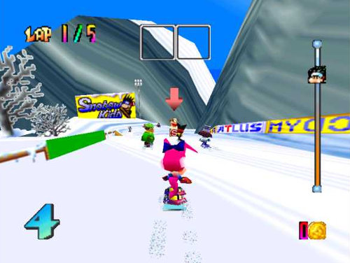 Snobow Kids : Informations : Plate-forme : Nintendo 64 (N64) Etat du jeu : Disponible Date de sortie française : 1998 1997 (USA) - 1997 (Japon) Genre : Course/Action Thème : Glisse Multijoueur : 1 à 4 Développeur : Atlus Editeur : Atlus Jeu également connu sous le Nom : Snowboard Kids |