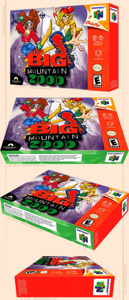 Snow Speeder : Informations : Plate-forme : Nintendo 64 (N64) Etat du jeu : Disponible Date de sortie française : 2000 11 octobre 2000 (USA) Genre : Sport de glisse Thème : Multi-épreuves Multijoueur : 1 à 2 Développeur : Imagineer Editeur : Southpeak Interactive Jeu également connu sous le Nom : Big Mountain 2000 |